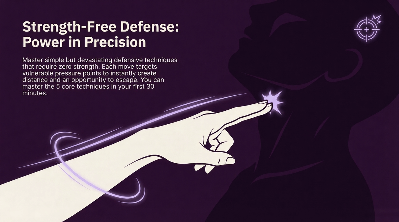 This isn't about flying kicks or complicated moves that only work in movies. Every technique has been field-tested by thousands of ordinary women in real Indian scenarios – from crowded metros to dimly lit parking lots. These methods work for women of ALL ages, sizes, and fitness levels.