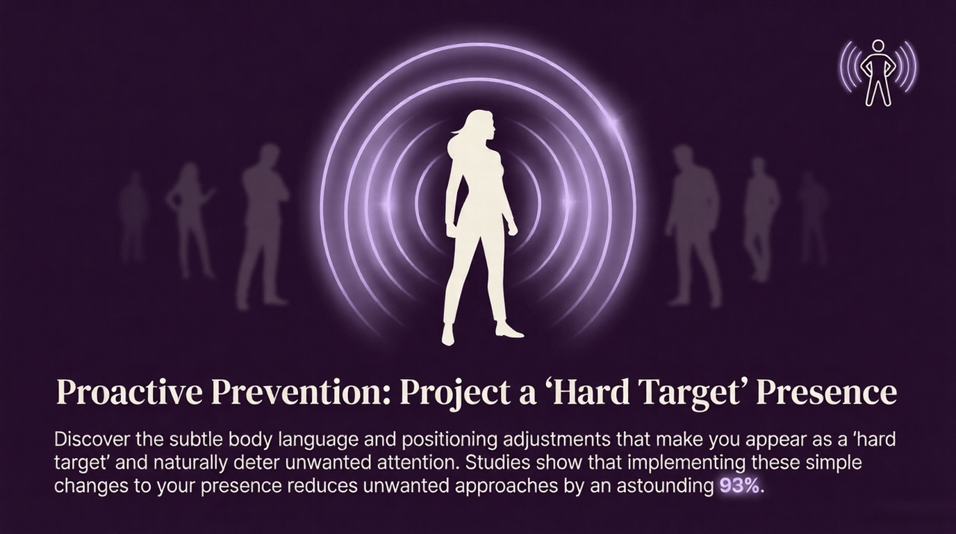 Finally stop the exhausting hypervigilance that drains your energy every day. Walk tall with the body language that naturally deters 93% of potential harassers.