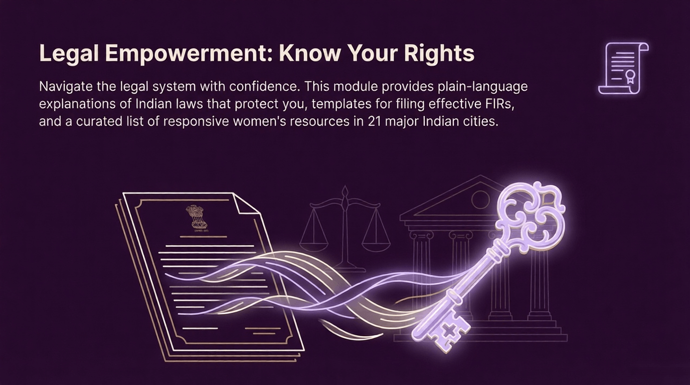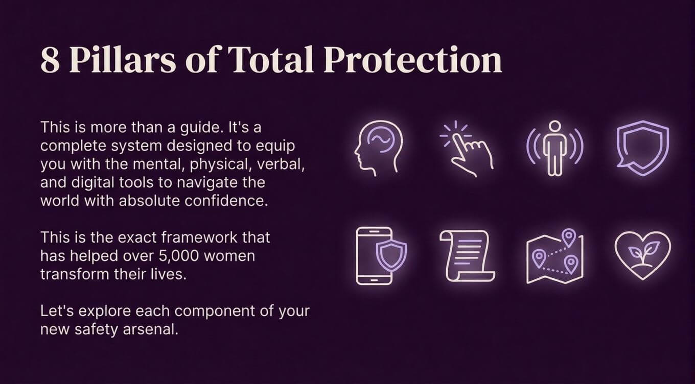 This is a complete safety system that addresses physical, mental, digital, and legal aspects of personal safety. Beyond physical techniques, you'll learn how to protect yourself online, understand your legal rights, create personalized safety plans, and transform the psychological patterns that feed fear. It's the most comprehensive women's safety resource available in India.